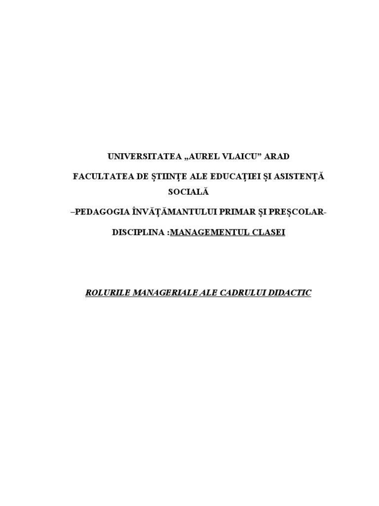 untuk "Rolurile Manageriale Ale Cadrului Didactic"