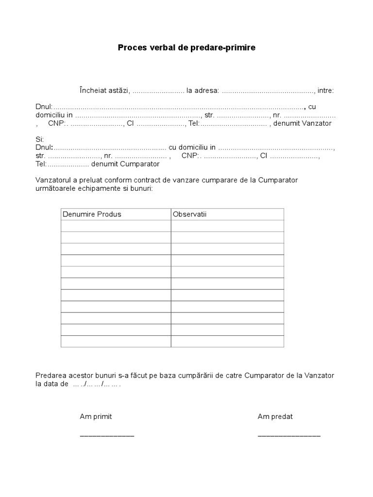 Comments and help with pv predare primire. Declară prin prezenta că a primit de la organizator premiul menționat în cuprinsul prezentului proces verbal, în starea în care.