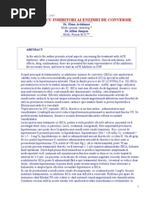 Inhibitorii enzimei de conversie a angiotensinei i reprezinta un grup de medicamente de prima linie folosite in tratamentul hipertensiunii arteriale, a caror eficacitate si buna toleranta au fost demonstrate pe parcursul ultimelor trei decenii. Sunt utilizati in tratamentul hipertensiunii arteriale si al insuficientei cardiace. Rezultatele cercetărilor privind tratamentul cu ieca la pacienţii capitolul v: