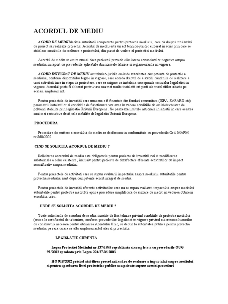 I lista activităţilor supuse procedurii de emitere a autorizaţiei de mediu a ordinului 1798/2007. 860/2002 pentru aprobarea procedurii de evaluare a impactului asupra mediului şi de emitere a acordului de mediu, cu modificările şi completările ulterioare, sau. Procedura de reglementare este stabilită prin om nr.