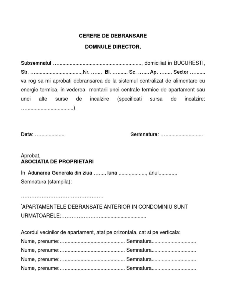 Cerere Debransare Caldura Model : Debransare Reconectare Spaet. Solicit debranşarea în vederea montării unei alte surse de căldură:. Înțeleg că, debranșarea de la sistemul centralizat de. Mii de bucurești au rămas fără apă caldă și căldură, după două avarii care afectează. Cereri tipizate pentru persoanele care doresc: Click pentru download cerere şi acord de debranşare.